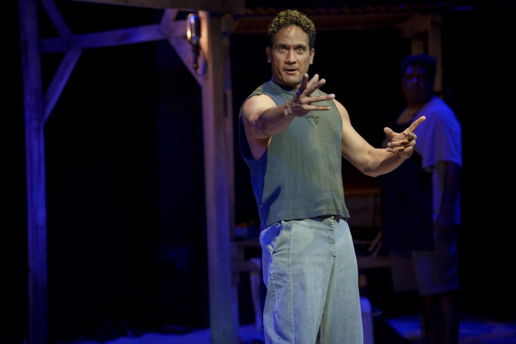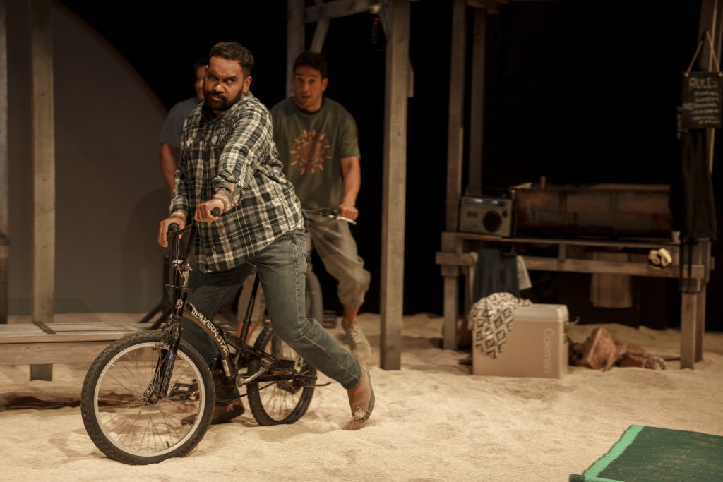 The cast give solid performances, sharing a commitment to honesty and emotional precision. Each actor brings a sense of care to their role, allowing the characters to exist as complex, imperfect people rather than symbolic figures. Particularly strong are the moments of stillness – a pause just slightly over-held, a line delivered without emphasis – where the emotional stakes emerge most clearly. Yet the cast also lean in to the script’s more humorous elements, from stories of outback road trips gone wrong to the idolisation of the footy. Of particular note are Tibian Wyles for his comic ability, Waangenga Blanco for his movement skills, Jimi Bani for an eye-opening monologue about the Indigenous people of Hobart, the Palawa, and Dandric returning to the stage after 13 years – stepping in last-minute due to cast illness.