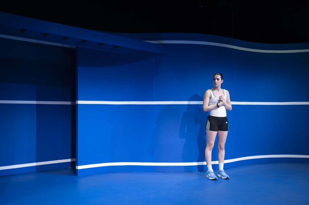 Visually, Lost Thought’s production is immediately striking. The sleek, blue set designed by Kate Beere evokes the geometry of an athletics track, transforming the stage into a stylised competitive arena. Lighting design by EJ Zielinski enhances this world with projections of stopwatches that pulse across the stage, reinforcing the play’s fixation on measurement and performance. The sound design and composition by Mitch Brown and Osibi Akerejola inject the show with propulsive energy, and the inclusion of the song ‘Proud’ by Heather Small served as an uplifting motif.