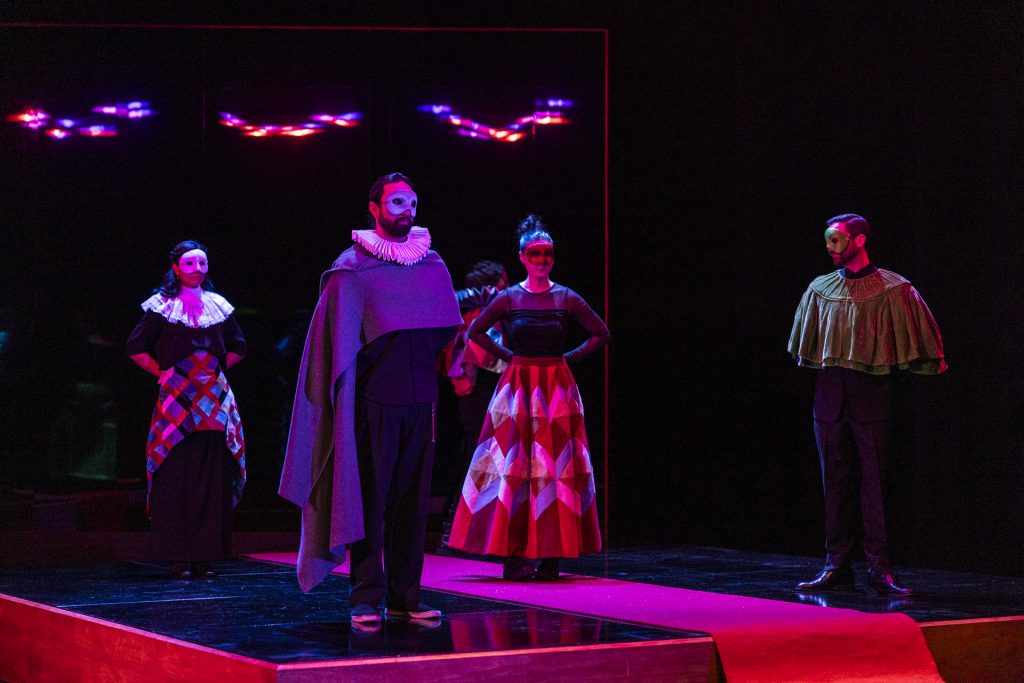 In director Peter Evans‘ style, the writing is front and centre. Production elements from sets to costumes are minimal. Some interesting lighting and sound design is featured, but is not intended (and nor does) get in the way. As a result, the beauty of the dialogue is untarnished; the poetry of Shakespeare is on full display. At the same time, it is accessible enough for all audiences to follow. One does not need to be fluent in the Bard to enjoy the show.